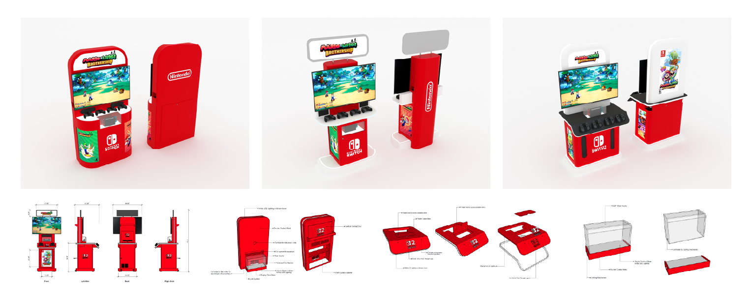 North Design Build partnered with Nintendo of Canada Ltd. to design and fabricate custom interactive display units for the Nintendo Switch 2. Each unit is built from 14-gauge steel and powder coated in Nintendo's signature red colour. The displays feature custom LED lighting and lightboxes to capture the attention of players. For added convenience, each unit is equipped with wheels and a rear handlebar, making transportation quick and efficient.